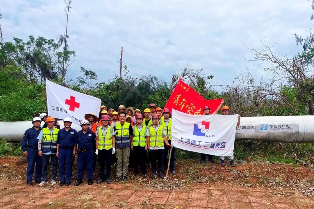 上海建工还联合三亚红十字应急救援中心,为华能海口电厂蒸汽管道清障,保障城市电力供应。