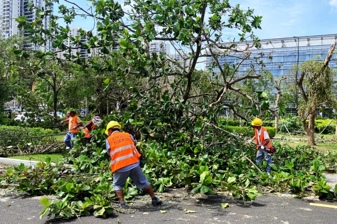 面对台风袭击,中国钢结构协会副会长单位--上海建工扛起国企责任担当,连夜组织抢险救援队参与台风灾后恢复重建工作,共计派出350余人次,调动吊车4辆、挖机5辆、铲车1辆、运输车15辆及其他机械设备参与抢险救灾,并向救援队伍捐赠150余箱盐汽水,助力海南受灾各市县尽快恢复正常生产生活。受台风“摩羯”影响,台风圈内各市县各街道均出现不同程度的树木倒伏,导致道路交通堵塞、水电中断等情况,抢险救援迫在眉睫。上海建工组织抢险救援力量迅速出动,连夜赶赴海口市主干道滨海大道清理树障,并参与到海口市国兴大道、火山口大道、江东大道等主干道及次干道的清障疏通工作中。