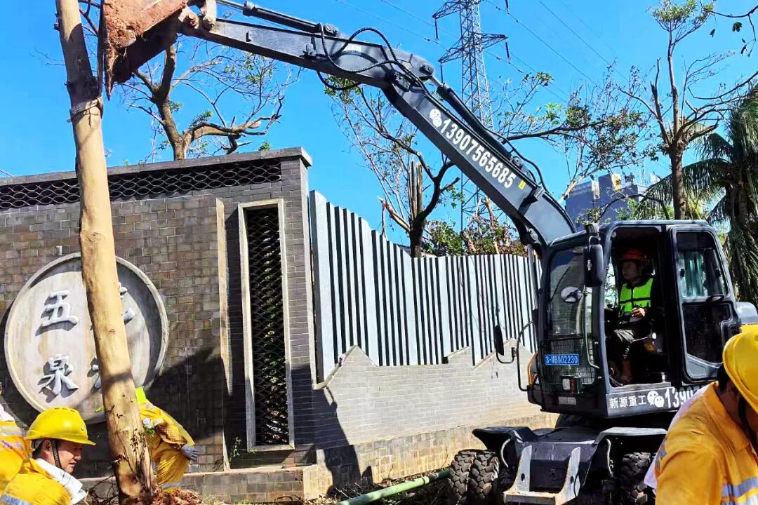 在海南区域总部的统筹安排和统一指挥下,从三亚和琼海等地调度2台挖机及3台大型运输车前往海口、文昌、澄迈等受灾市县增援,保障交通正常通行。