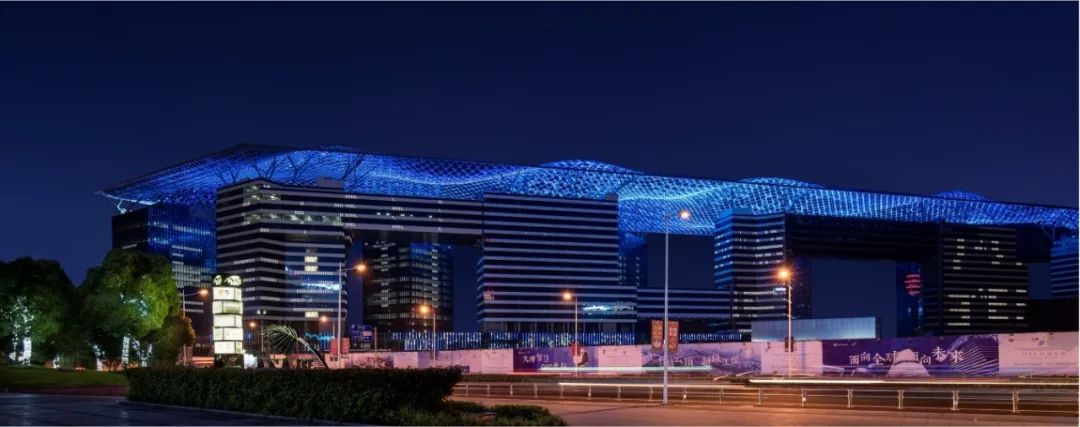 G60科创云廊最让人津津乐道的,是16万平方米的屋盖上附着的24万盏LED灯,通过数字化输出图案、字体、视频等内容,承载起信息发布的功能,形成了标志性天幕。